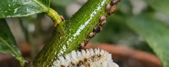 Se as folhas do seu limoeiro estão pegajosas e os caules têm estranhas placas castanhas, a árvore está a ser atacada. lagarta-do-cartucho.