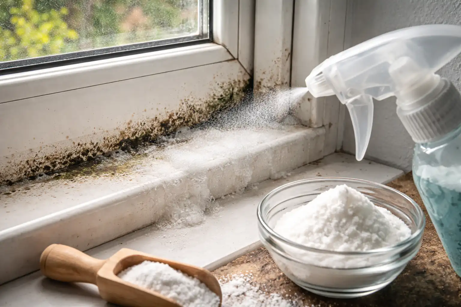 O degelo da primavera traz não só calor, mas também humidade excessiva, que se torna um terreno ideal para a reprodução de fungos. fungos de bolor. Se notar manchas escuras nos parapeitos das janelas ou uma pátina branca no jardim, não se apresse a comprar fungicidas tóxicos. O bicarbonato de sódio comum é um poderoso baguete alcalinaque altera o pH do ambiente, impossibilitando a sobrevivência do fungo.