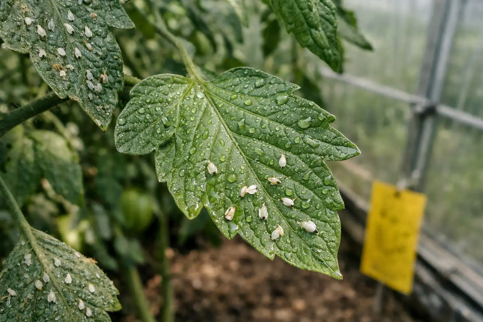 A forma mais eficaz é começar com controlo. Assim que a temperatura na estufa subir acima dos dez graus, pendure folhas de cola amarela. A cor atrai os adultos, que se colam, e é possível ver imediatamente a dimensão do problema. Se, num dia, aparecerem mais de cinco borboletas numa armadilha, está na altura de agir.