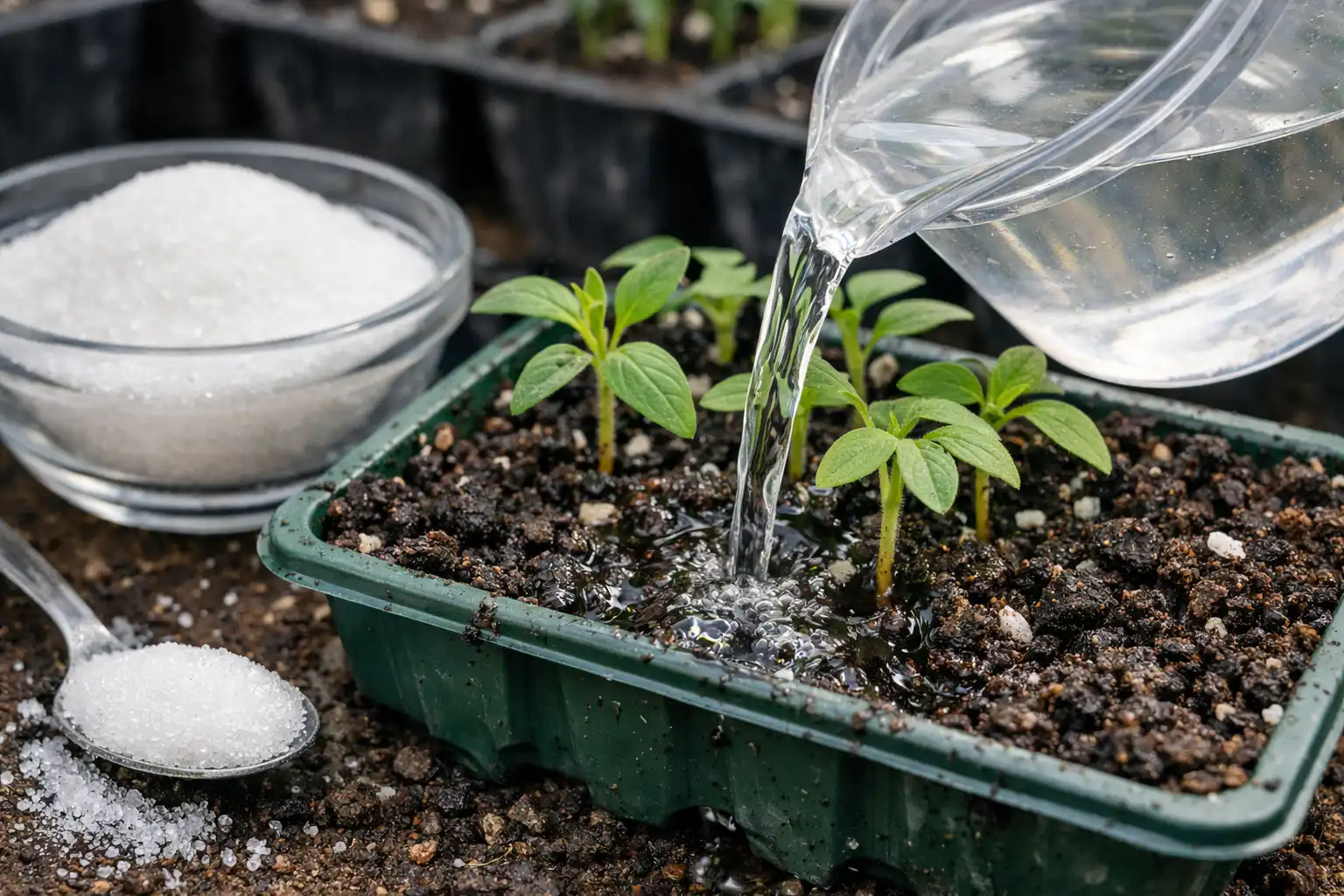 As suas plântulas estão atrofiadas ou com um aspeto pálido face à falta de sol da primavera? A solução está muitas vezes na prateleira da cozinha. O açúcar comum pode ser um poderoso impulsionador de energiaque ajudará as plantas a sobreviver ao stress da colheita e a preparar-se para a plantação no solo.