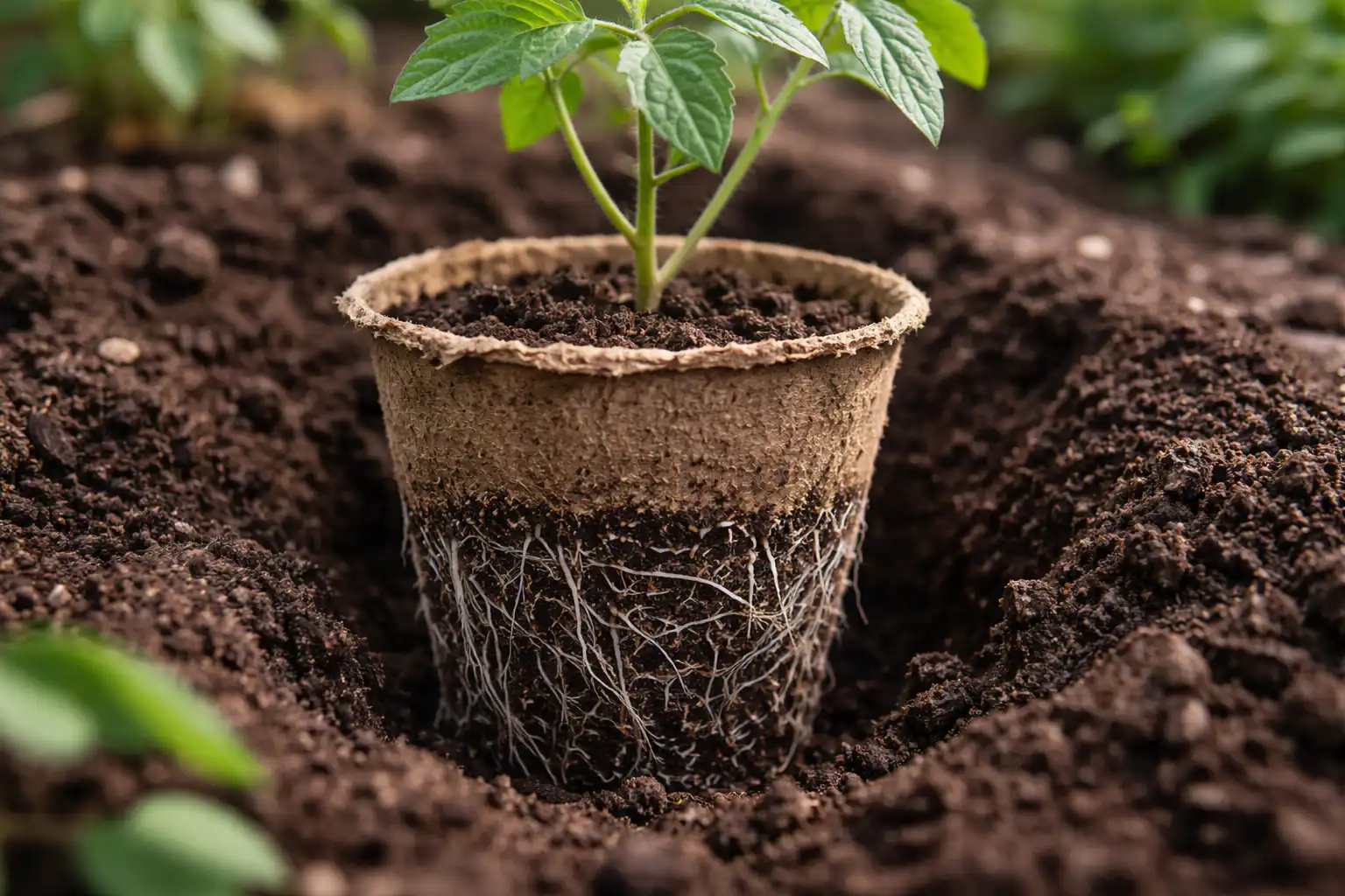 A preparação correta do substrato no interior do recipiente também é fundamental. Os tomates gostam de uma mistura solta e nutritiva que não se compacta quando as paredes de turfa secam.