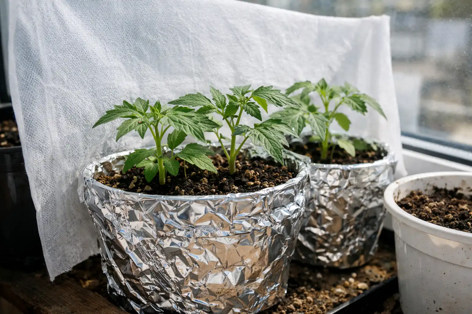 Envolva os vasos em papel de alumínio ou papel branco para refletir os raios.