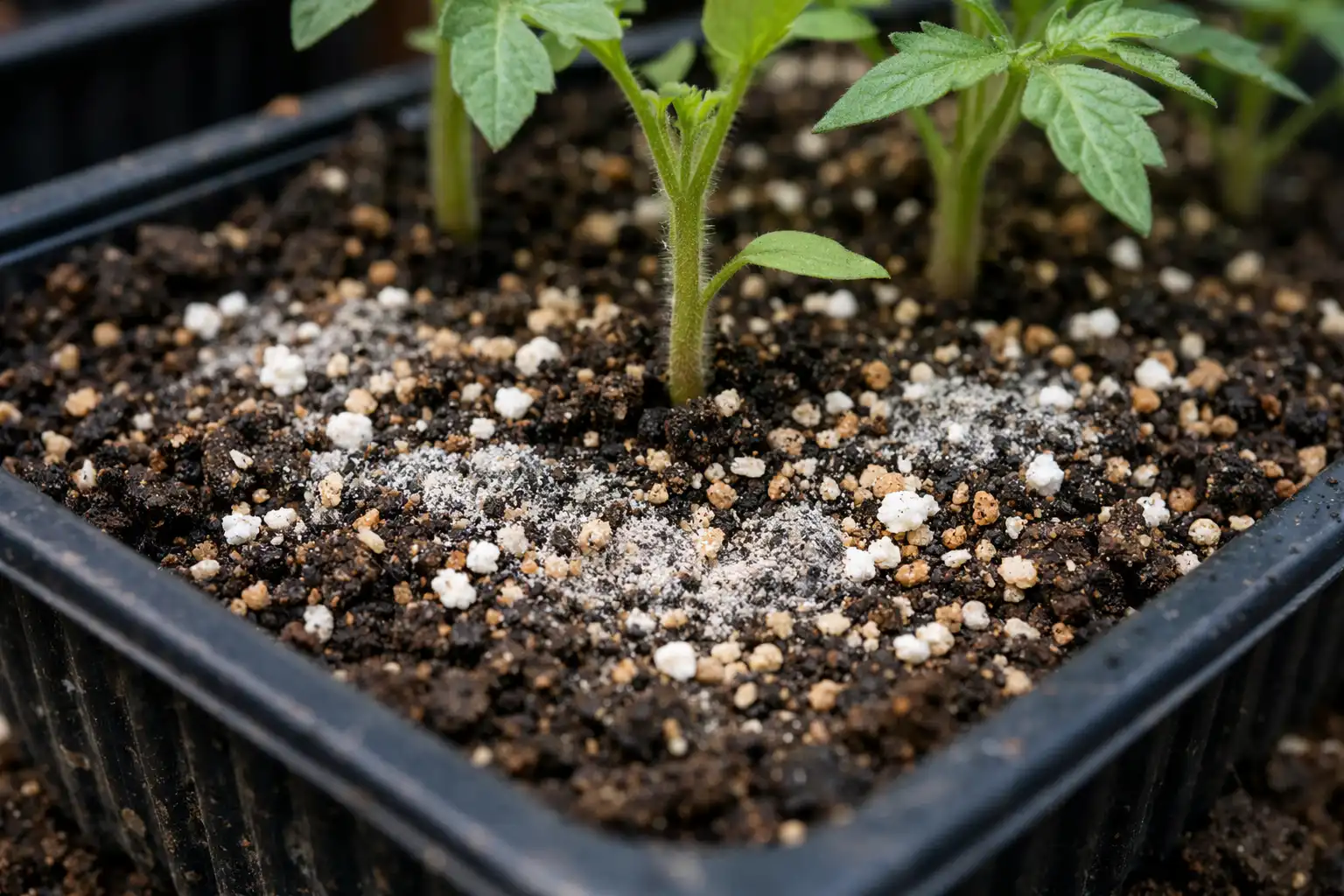 Nuance secreta: se a terra estiver crocante na parte superior, nunca a solte profundamente. Os tomates têm raízes superficiais muito delicadas durante o período de plântula. É preferível furar a terra com um palito em vários sítios, a uma profundidade de dois centímetros no máximo, para dar oxigénio às raízes.