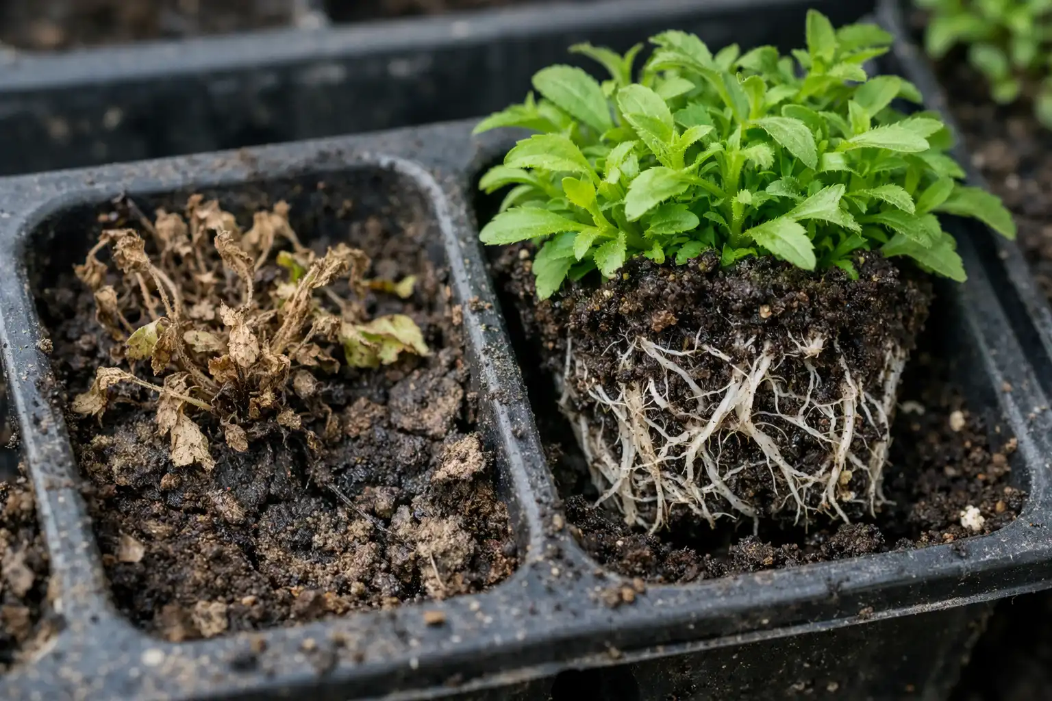 É importante compreender a diferença entre deficiência de humidade e doença fúngica. Muitas vezes, os jardineiros confundem essas condições e começam a regar ainda mais as mudas que já estão apodrecendo.