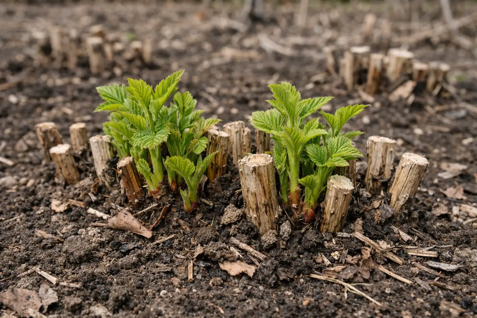 Imediatamente após a remoção dos ramos, vale a pena aplicar um fertilizante azotado no solo para estimular o rápido crescimento de novos caules.