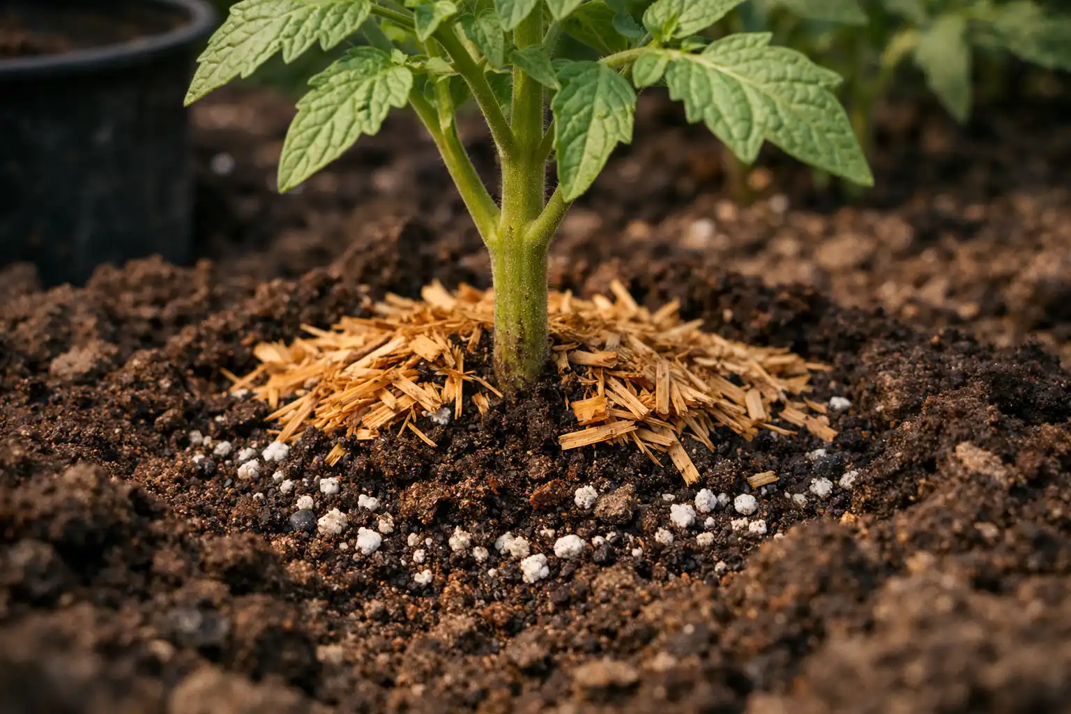 Solte suavemente a camada superior do solo para permitir a entrada de oxigénio.