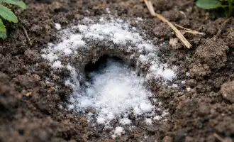 Polvilhe terra seca na superfície do solo cinza de madeira ou carvão vegetal triturado.