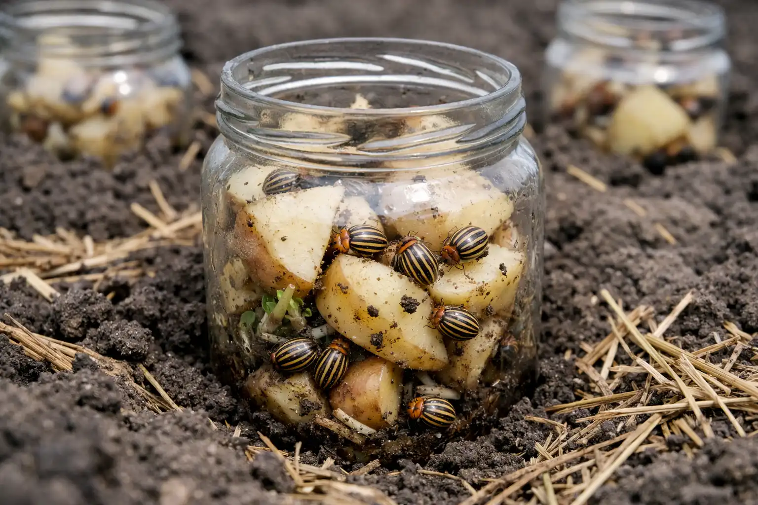 Uma nuance secreta: os escaravelhos reagem não tanto à visão das batatas como ao cheiro das enzimas que elas libertam. Se se juntarem algumas cascas de batata ao frasco, o efeito é duplicado devido à grande área de evaporação do odor.