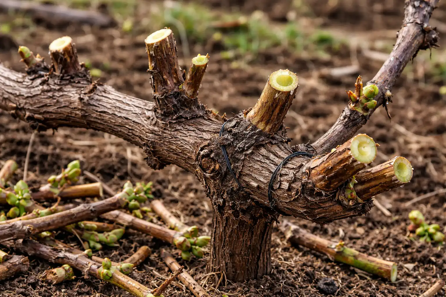 A poda na primavera permite avaliar com precisão o estado da vinha após o inverno e ajustar a carga.