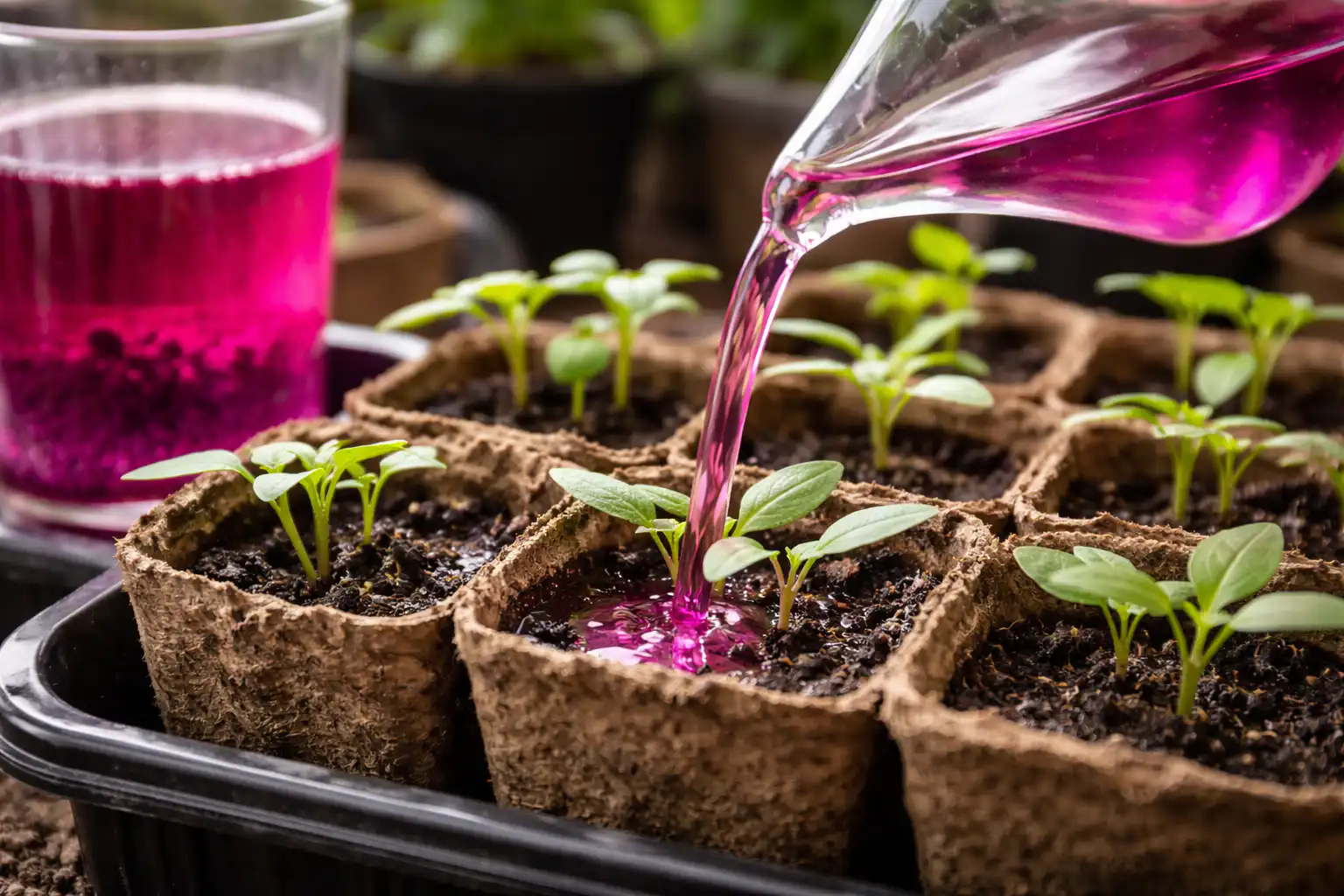 Se a solução se tornar quase preta e opaca, deve ser diluída com água, caso contrário as sementes sofrerão uma queimadura química.