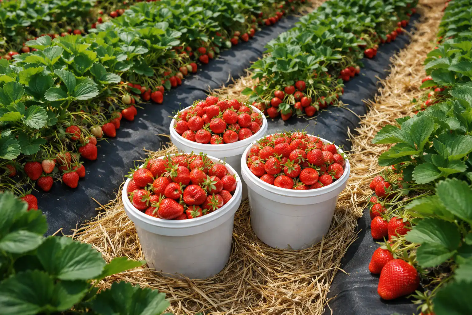 Os cuidados de qualidade com os morangueiros garantem uma colheita estável durante todo o verão.