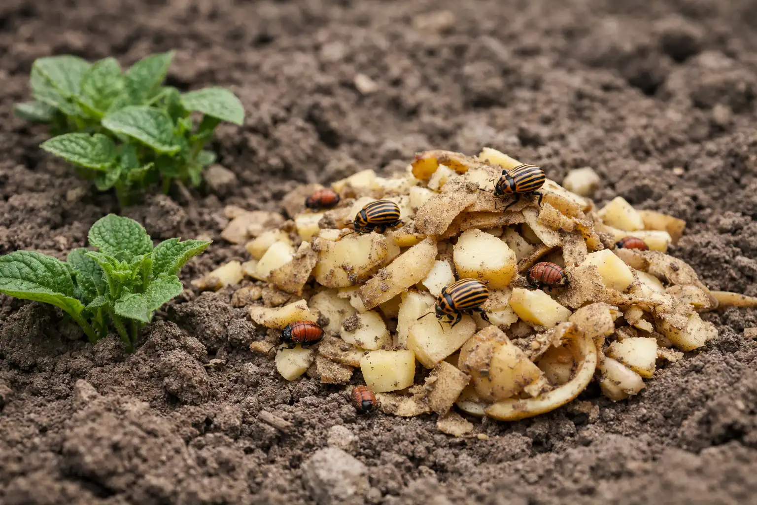 Não, os escaravelhos são atraídos pelo cheiro a sumo fresco dos tubérculos saudáveis, os podres apenas os afugentam.
