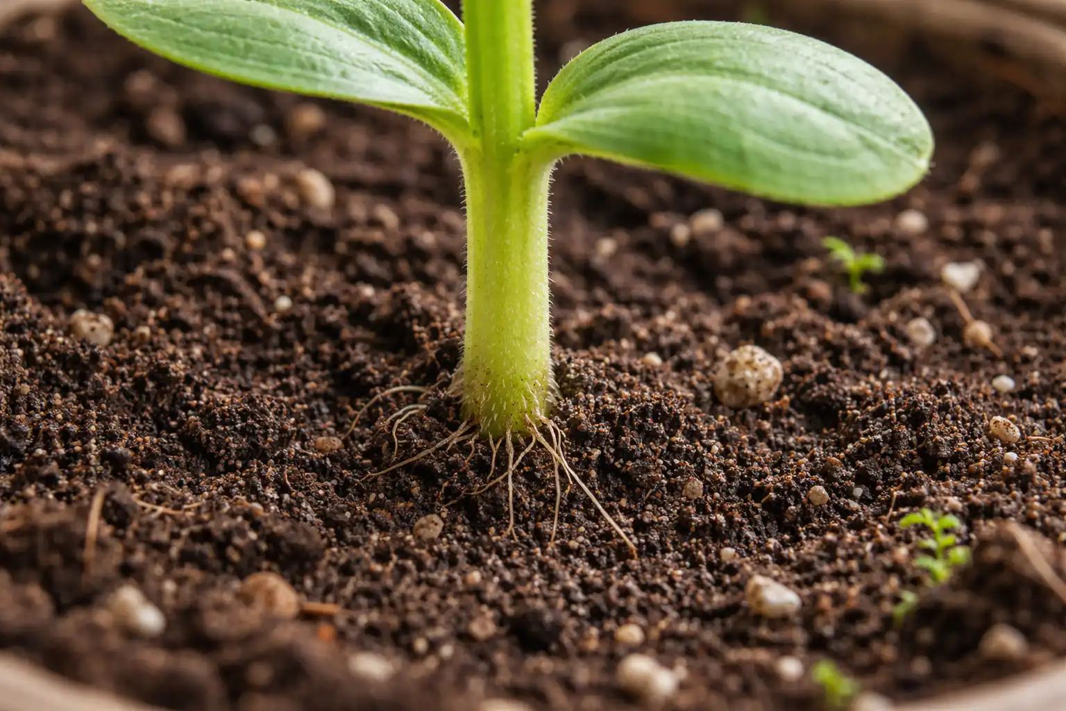 Para que os caules cresçam inicialmente grossos, preparo o solo com a adição de perlite ou vermiculite. Isto torna o solo solto e permite que as raízes respirem, o que afecta diretamente a estabilidade da parte acima do solo.
