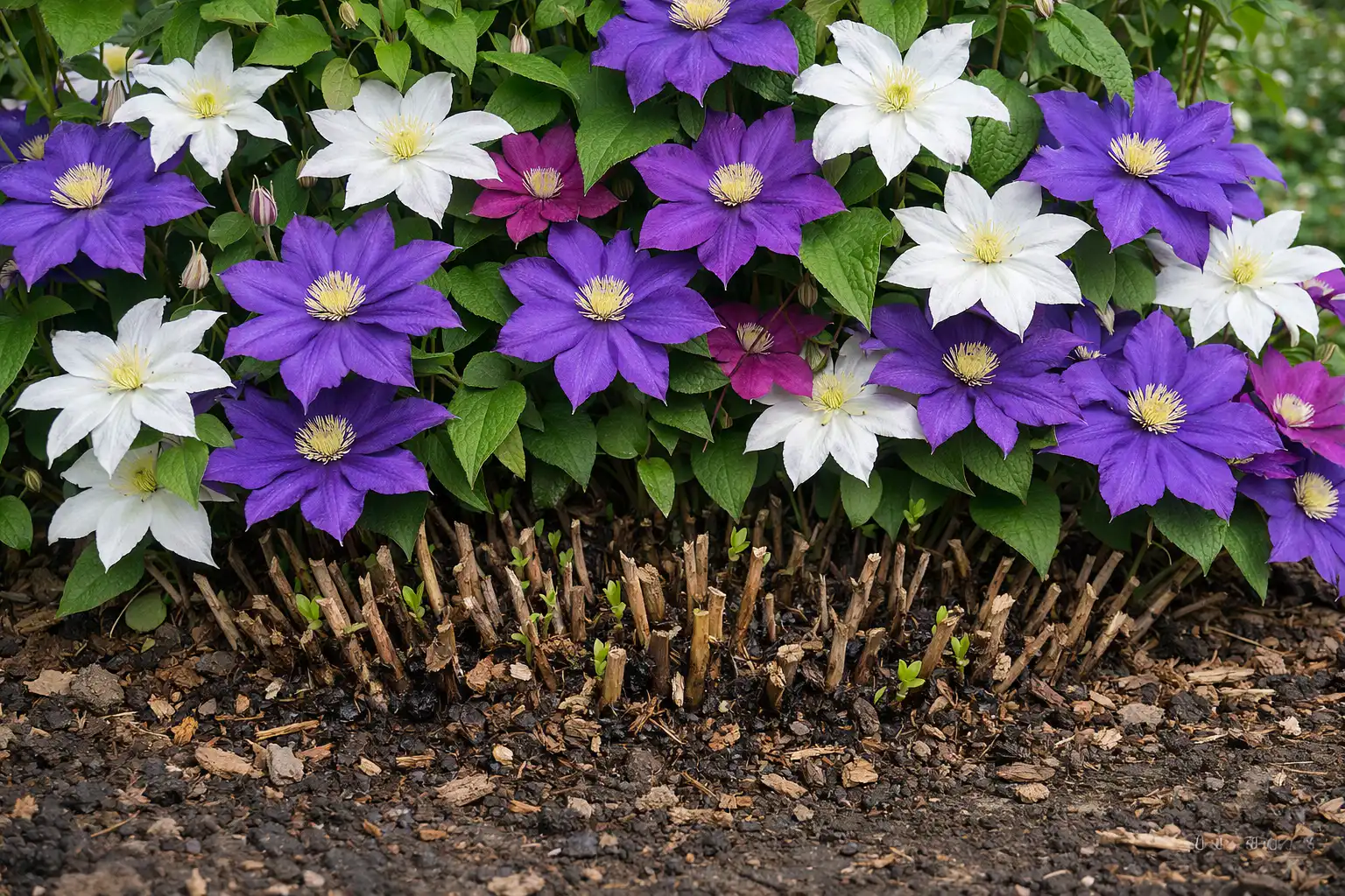 Sem o controlo das tesouras de poda, a clematite torna-se rapidamente um emaranhado de ramos secos com flores que só aparecem no topo. A intervenção primaveril permite à planta redirecionar os recursos da manutenção da madeira velha para a criação de novos rebentos fortes.