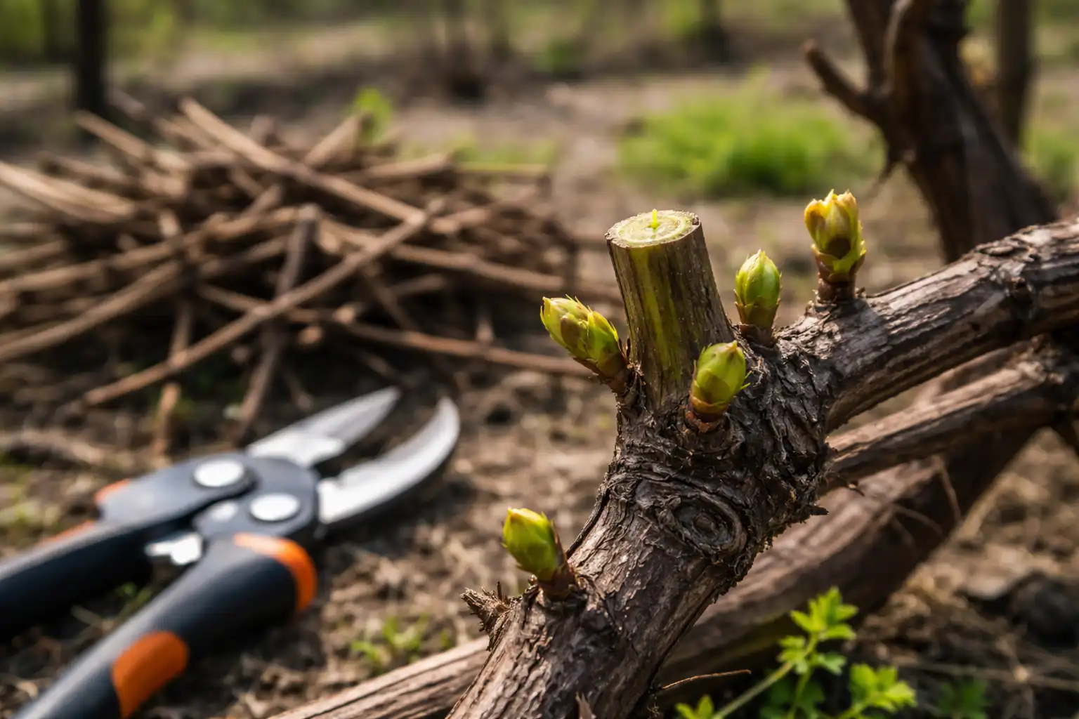 A poda primaveril das uvas transforma os matagais selvagens numa fonte de bagas doces