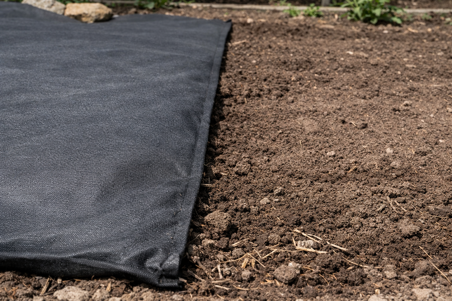 A temperatura sob a camada de material aumenta, o que provoca uma “falsa” germinação e a subsequente morte da erva.