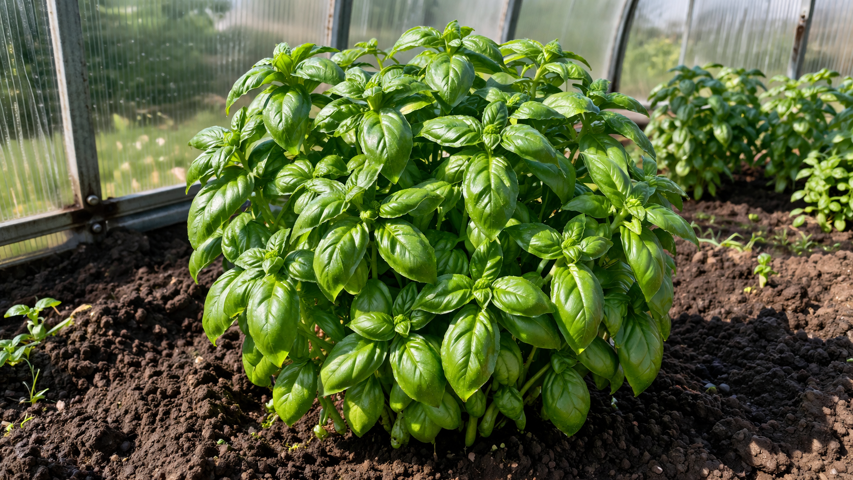 A temperatura do solo e a qualidade das plântulas são fundamentais para uma colheita precoce na estufa. O manjericão é nativo dos trópicos, pelo que qualquer frio inibe o seu desenvolvimento.