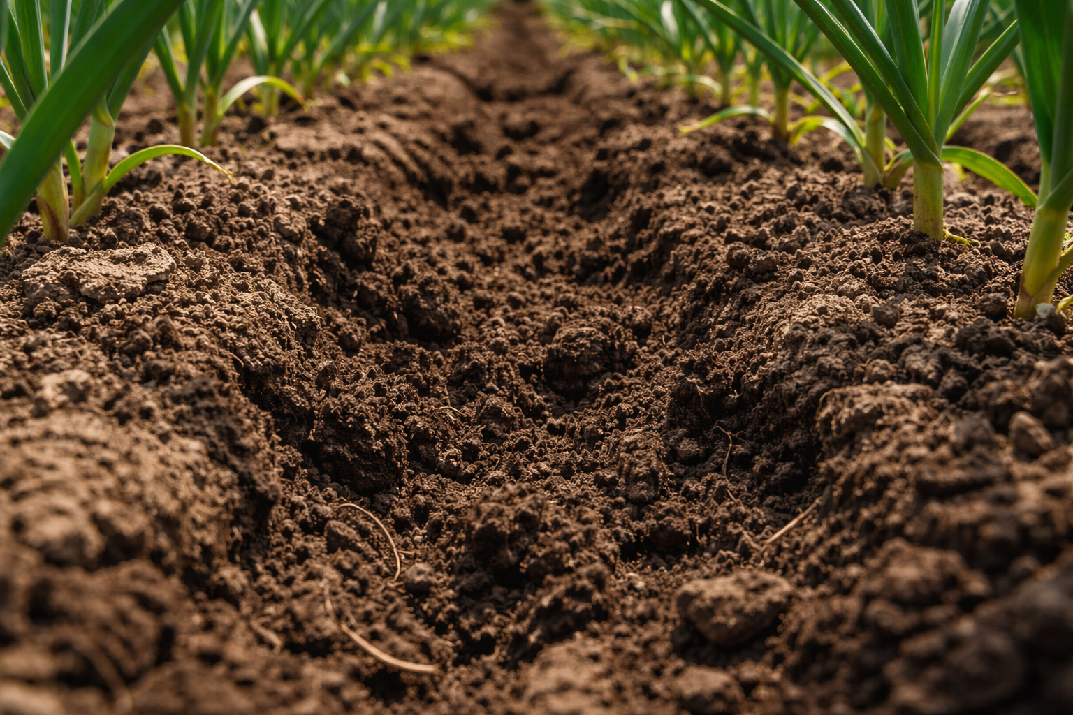 Afrouxar o espaçamento entre linhas a uma profundidade de 5-7 centímetros.