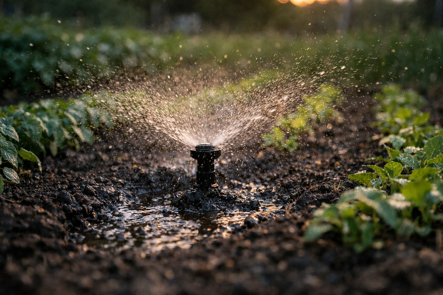 Durante a noite, o solo é saturado uniformemente, criando um ambiente húmido para as microorganismos benéficos.