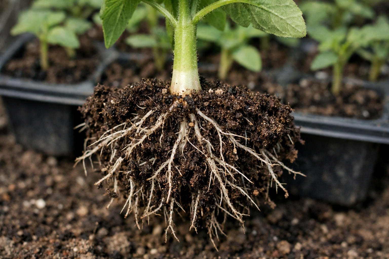 Melhoria do enraizamento das plantas após o transplante para o solo.