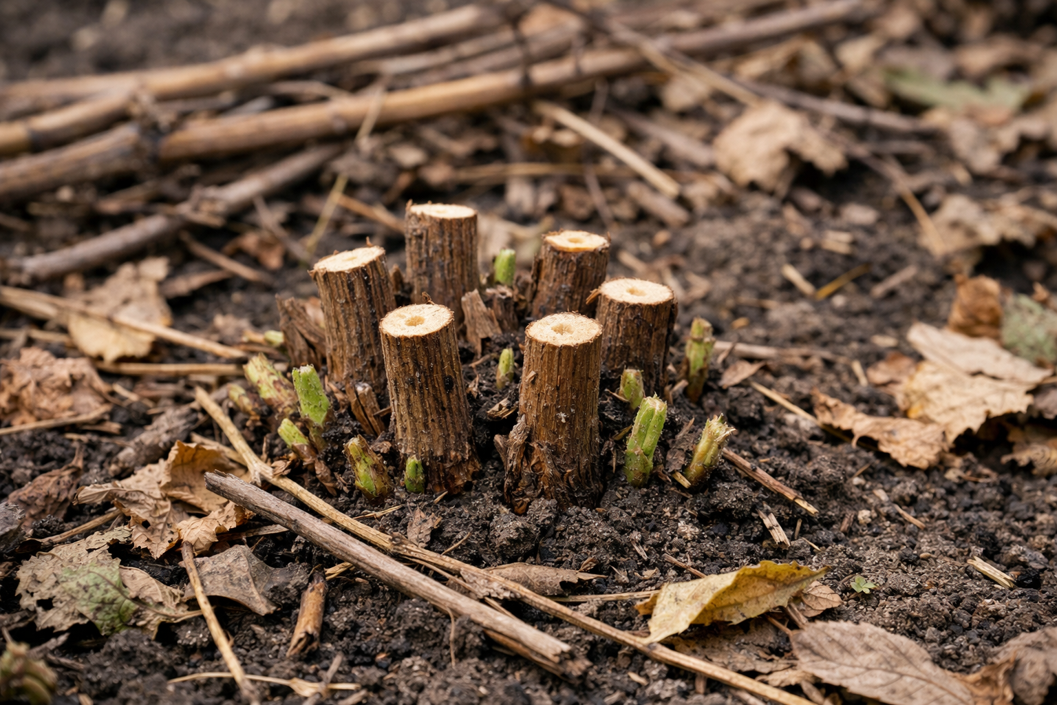 Permitir que a luz solar amadureça a casca dos rebentos jovens.
