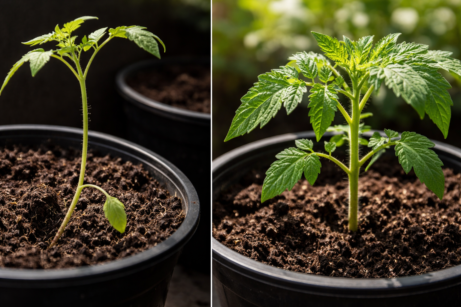O segredo dos caules fortes ou porque é que os seus tomates ficam pálidos à sombra