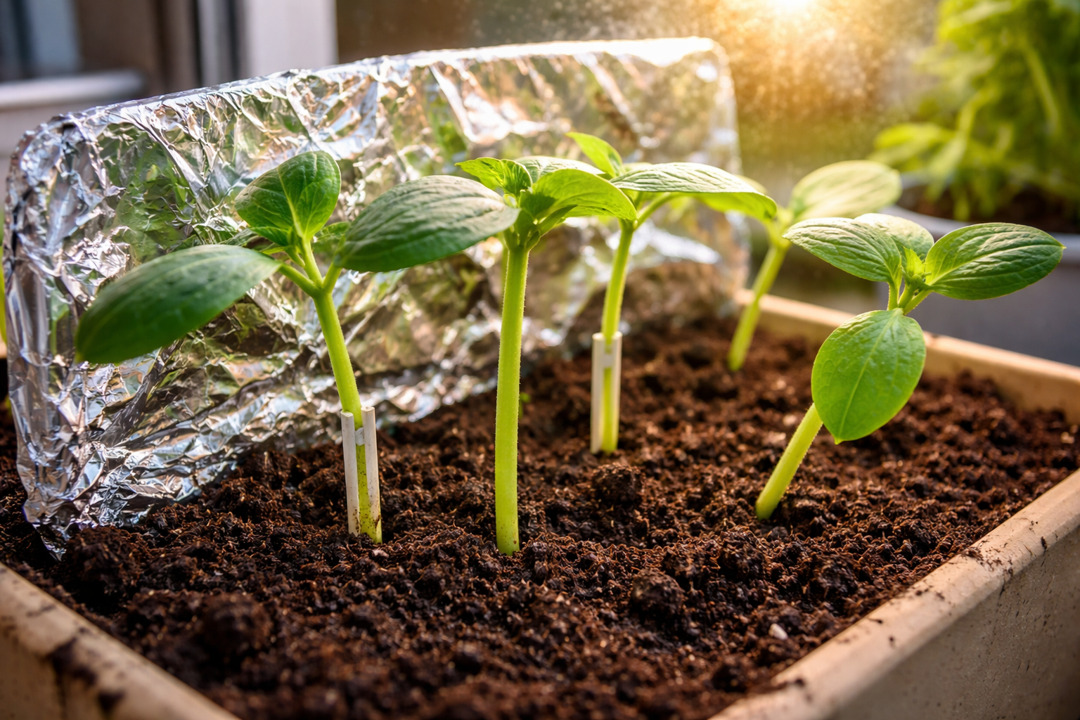 Coloque uma tela de alumínio ou um espelho atrás da plântula para refletir a luz do dia residual.