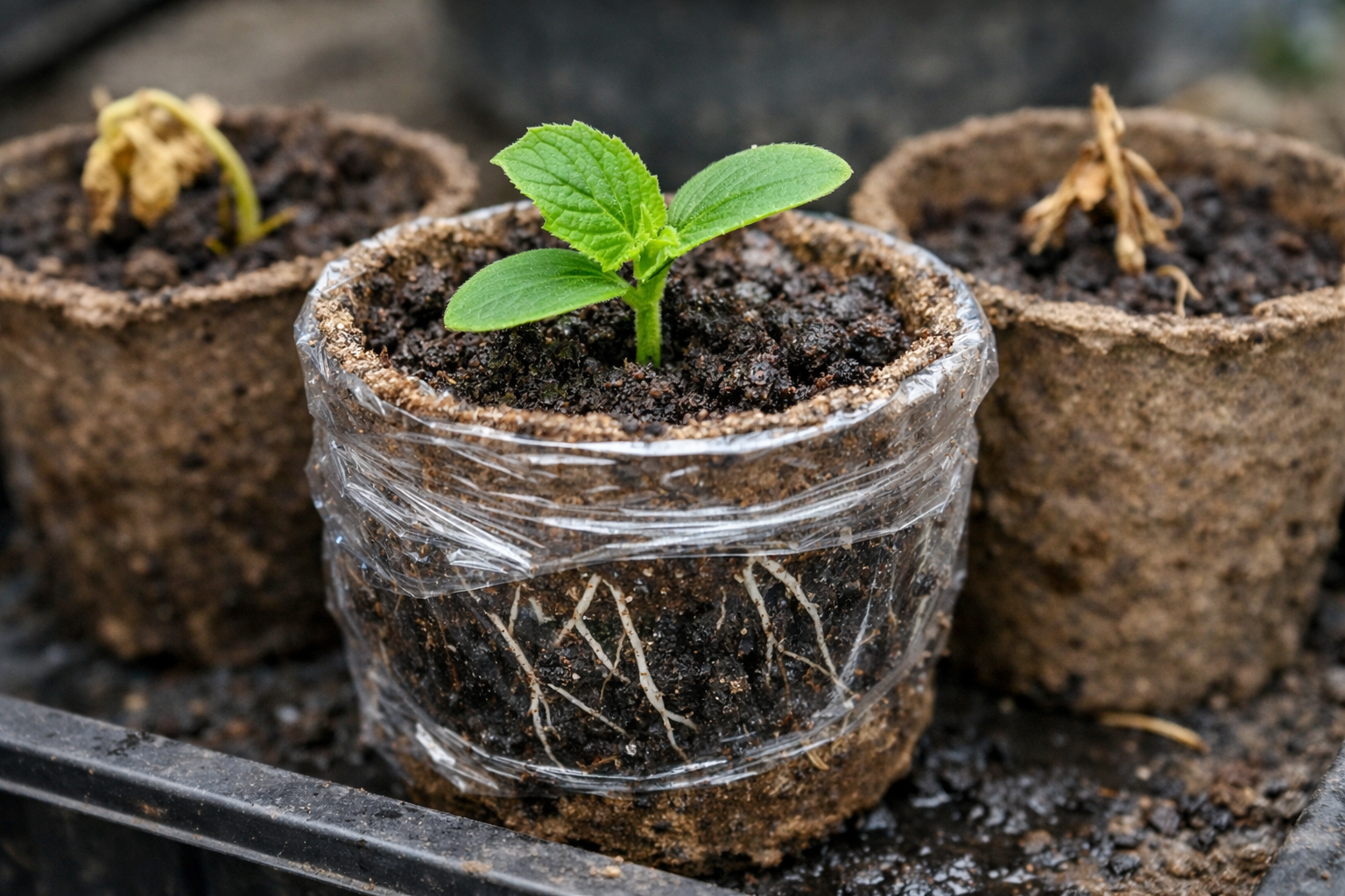 Se decidir utilizar recipientes de turfa, estes não podem ser simplesmente retirados da embalagem e despejados no solo. O material requer um pré-tratamento para que possa ser utilizado com segurança sistema radicular.