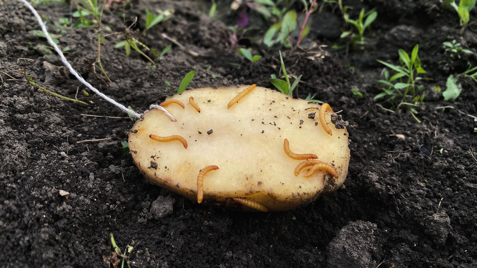 Na primavera, quando o solo aquece até cinco a sete graus, bicho-da-farinha sobe para o topo do solo em busca de alimento. Esta é a altura ideal para o atrair antes da plantação da cultura principal. O método mais eficaz é a colocação de iscos. Enrolam-se pedaços de batata crua ou de cenoura numa linha de pesca e enterram-se a dez centímetros de profundidade. Passados três dias, retira-se a “presa” e destrói-a.