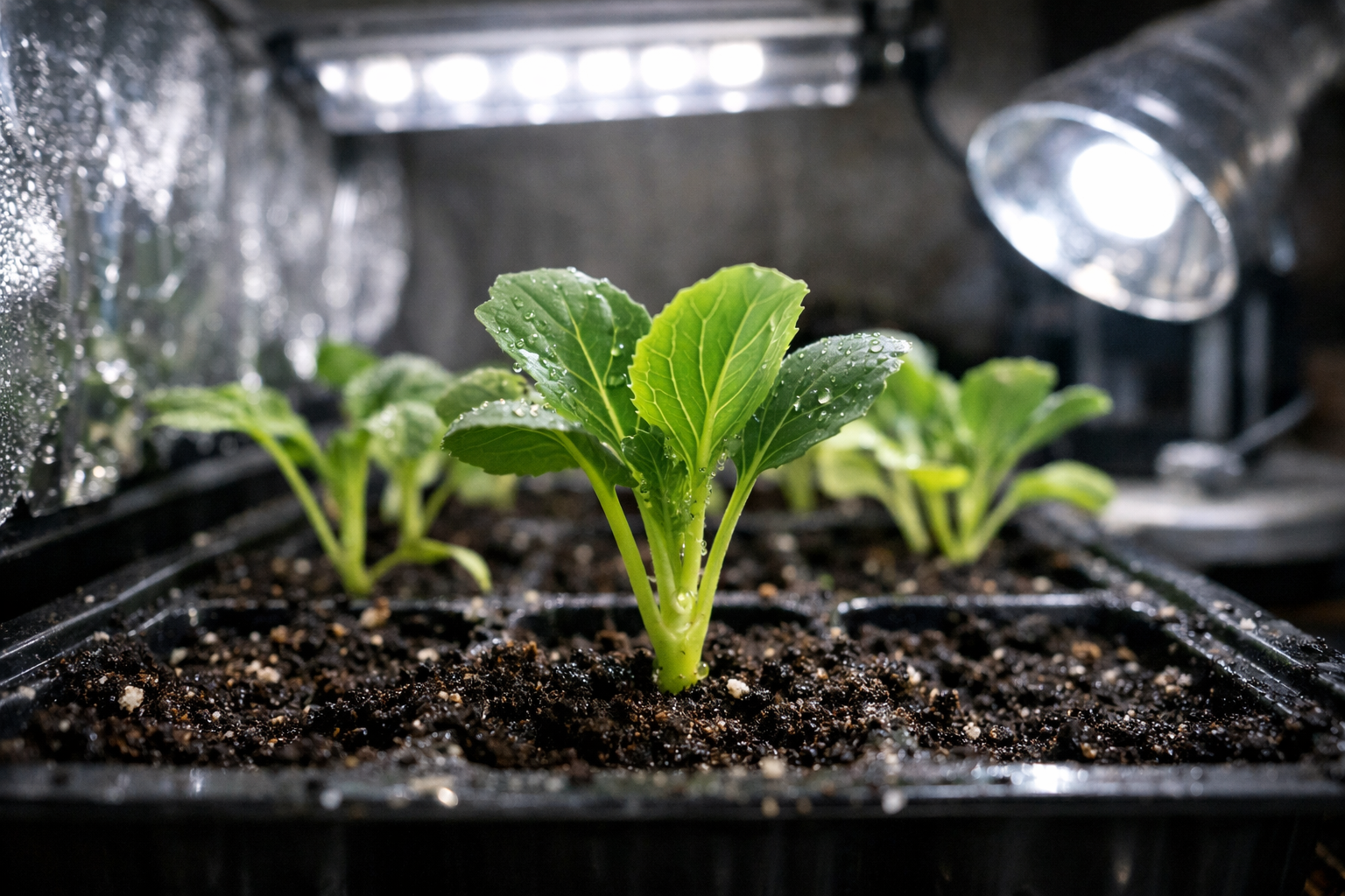 Uma iluminação e um controlo de temperatura corretos garantem plântulas fortes para uma colheita precoce.