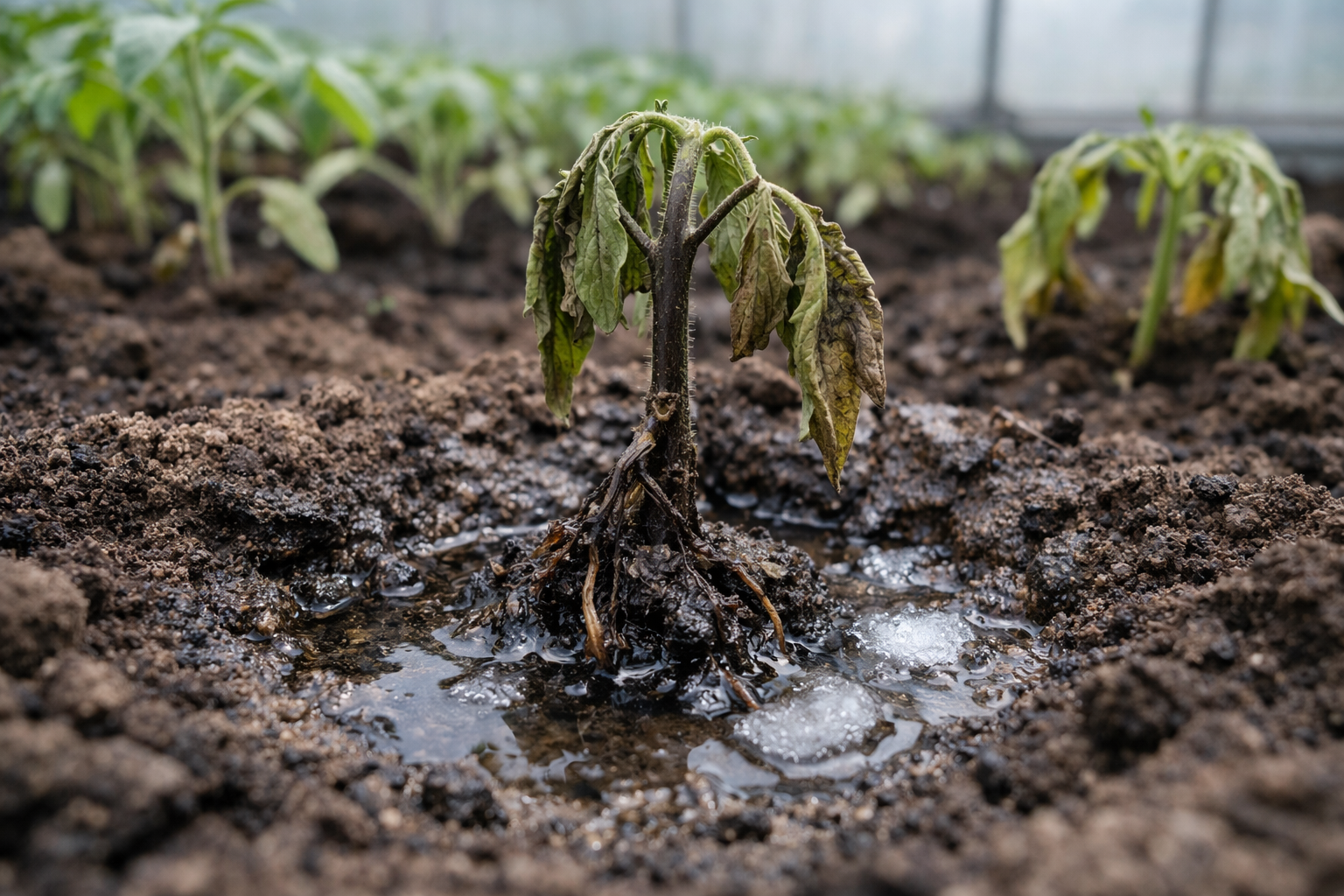 Quando plantamos tomates ou pimentos na estufa em abril ou maio, o solo ainda tem frio residual. Rega com temperaturas da água +5…+10°C induz nas plantas uma verdadeira choque térmico. Os capilares da raiz encolhem, a absorção de nutrientes pára e a planta gasta toda a sua energia na sobrevivência e não no crescimento.