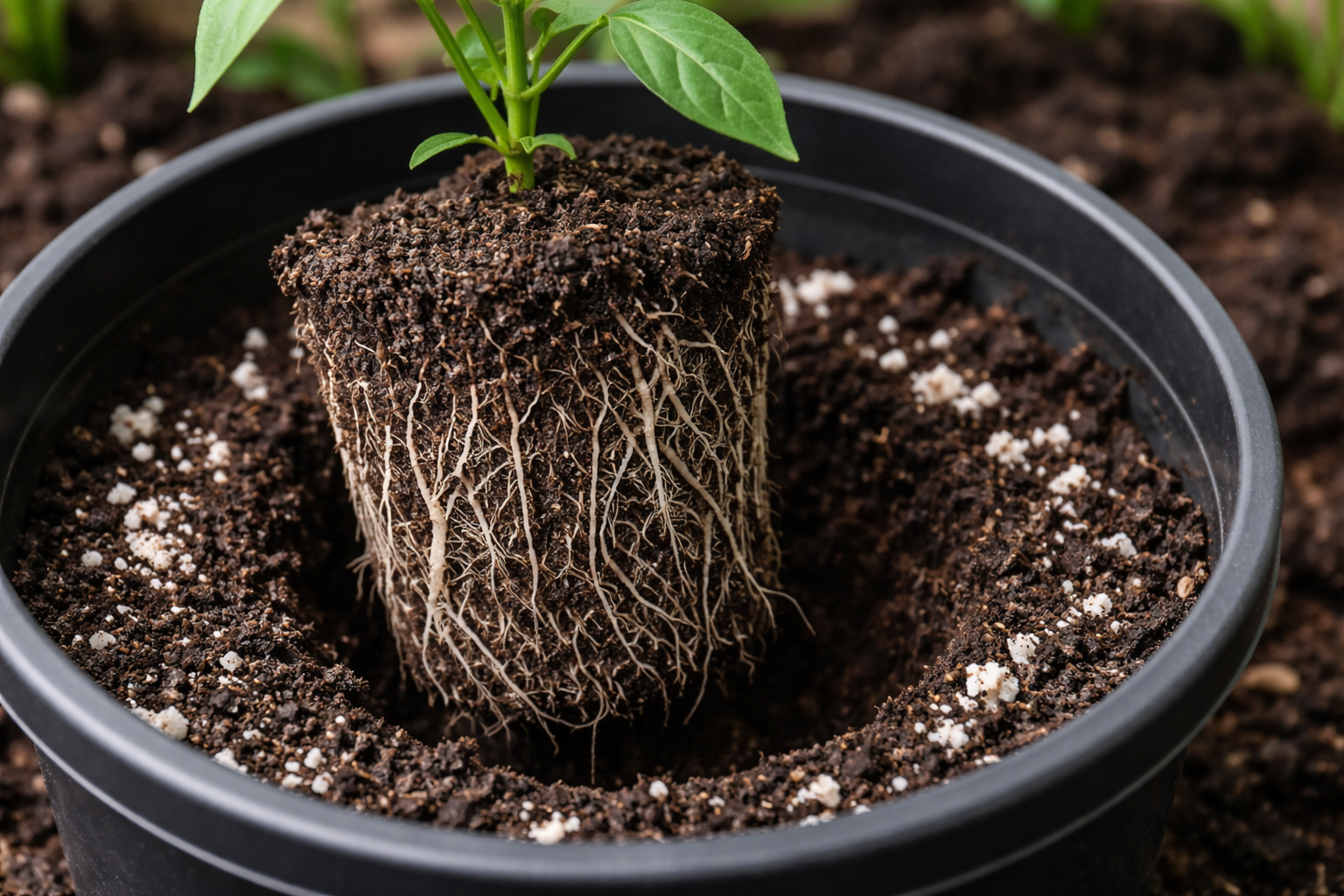 Ao contrário dos tomates, pimento doce tem um sistema radicular muito delicado. Se se dobrar a raiz central ou se deixar uma camada de ar no solo durante o cultivo, a planta utilizará toda a sua força para sobreviver em vez de desenvolver folhas.
