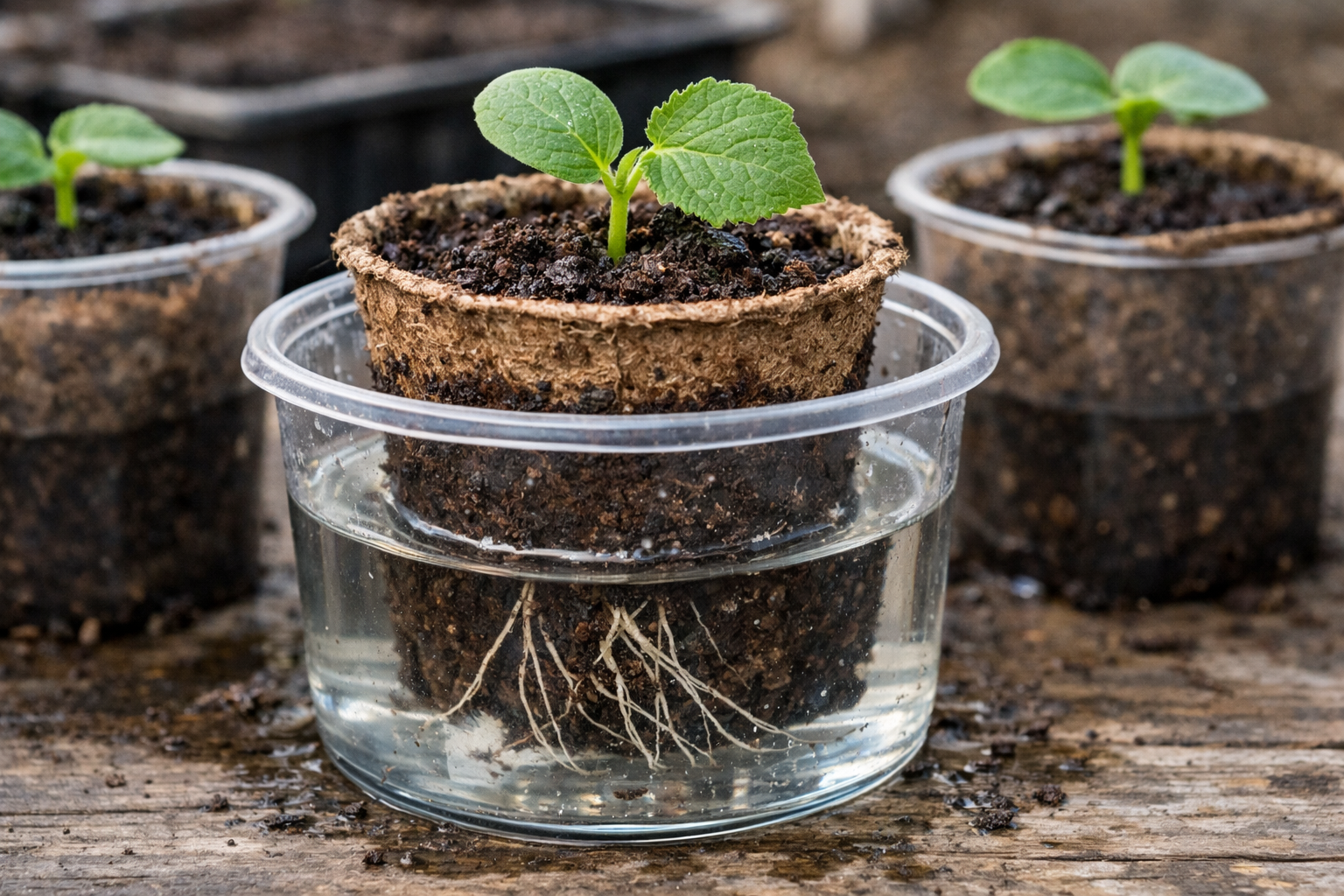 A principal razão para o fracasso reside nas propriedades físicas dos próprios contentores. Qualidade vasos de turfa são extremamente higroscópicos. Se o equilíbrio for perturbado, as paredes do recipiente começam a funcionar como uma esponja, retirando impiedosamente a água do solo. O resultado é que sistema radicular O sistema radicular de um jovem vegetal fica preso numa armadilha seca, mesmo que se aplique regularmente rega de superfície.