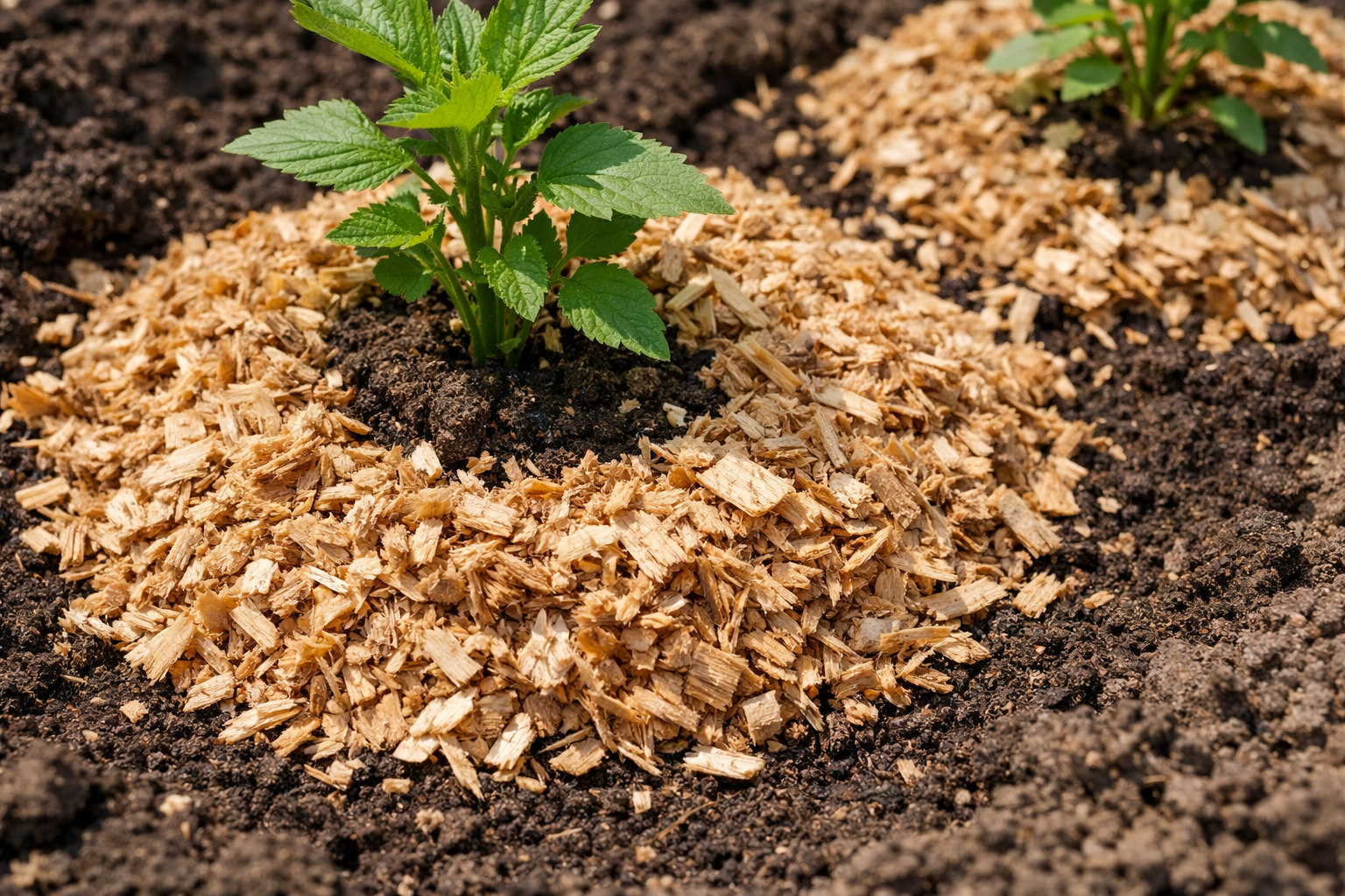 Posso colocar aparas de madeira frescas diretamente nos canteiros?
