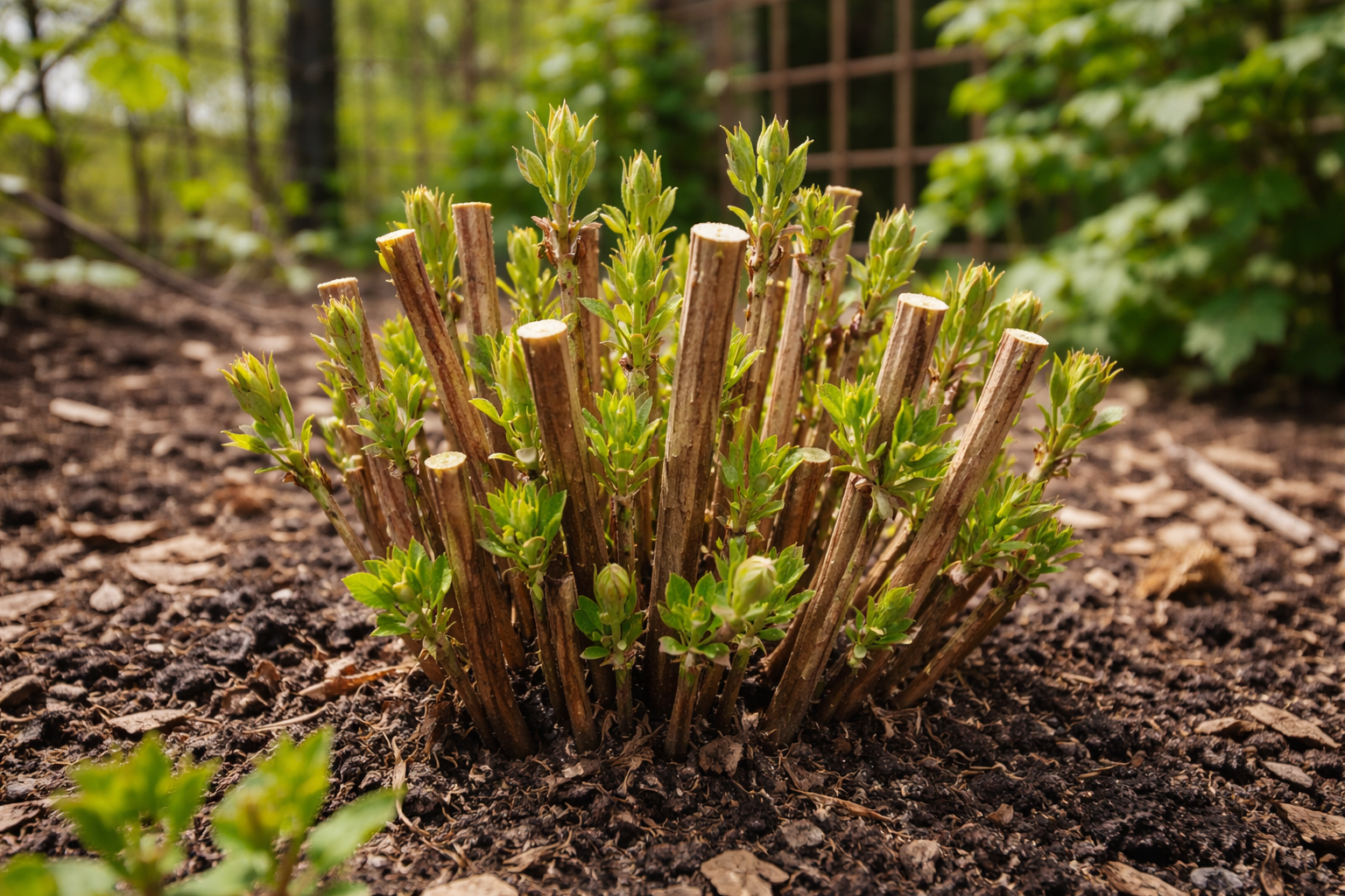 Variedades de floração precoce requerem apenas uma ligeira limpeza cosmética dos ramos que congelaram durante o inverno.