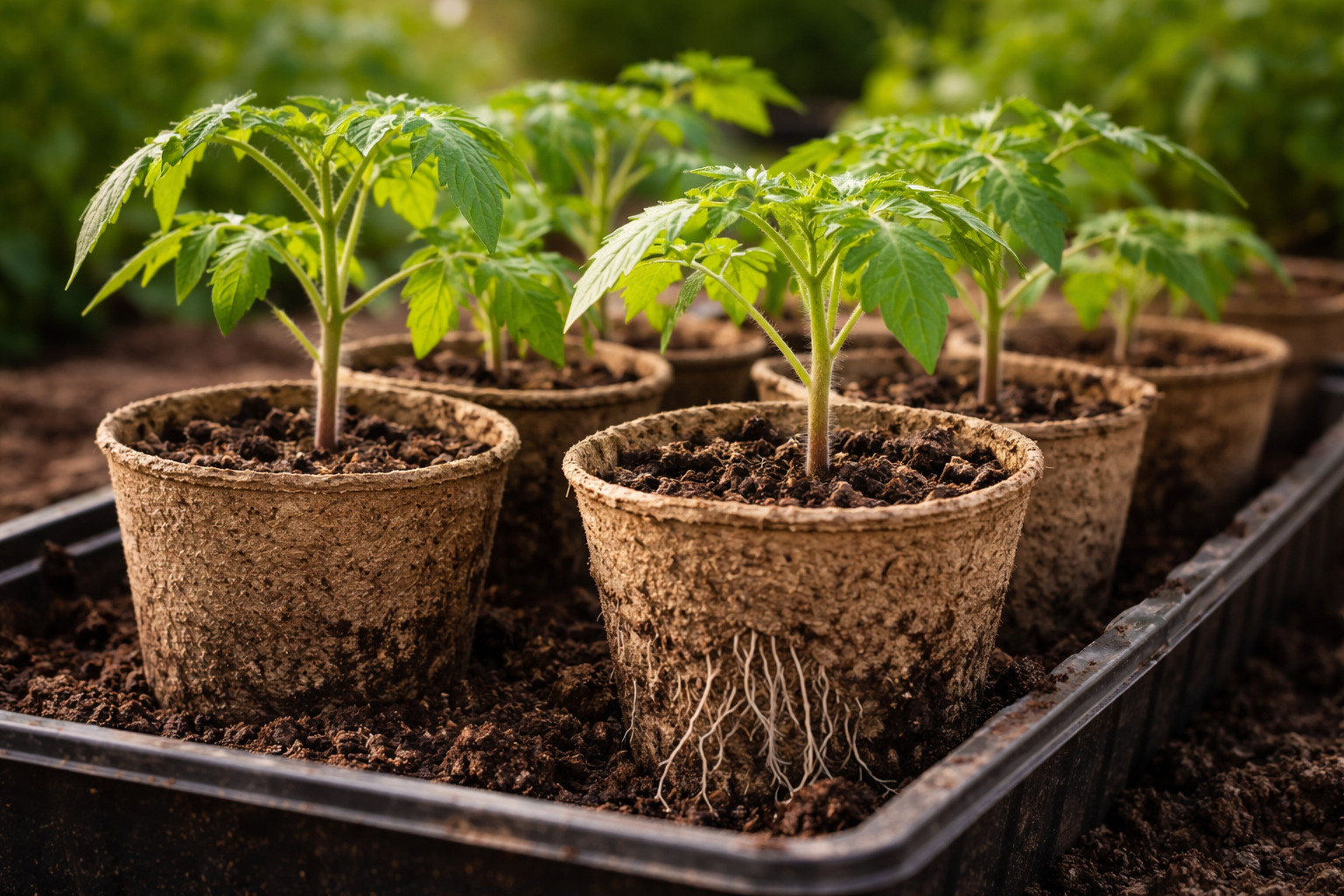 O começo certo para sementes de tomate determina toda a futura colheita. A principal vantagem deste método é o facto de a planta ser transferida para um local permanente através do método de transplante. Basta enterrar o recipiente no solo, onde este se dissolverá com o tempo, enriquecendo o solo com matéria orgânica e preservando a integridade do torrão.