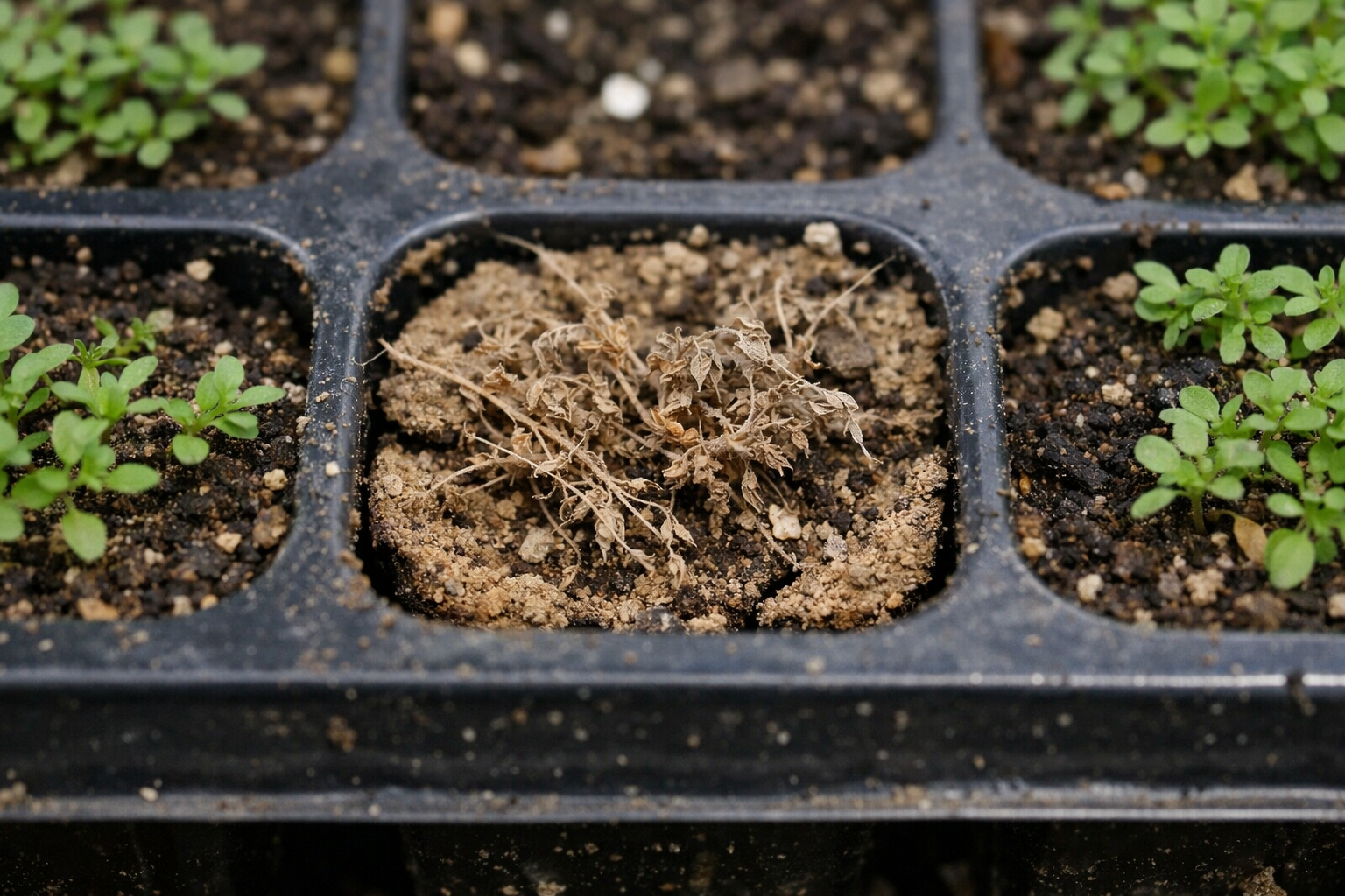 Muitas vezes os jardineiros confundem a dessecação banal com infecções perigosas. Em locais apertados. cassetes de plantação a linha entre a escassez de água e o encharcamento é muito ténue, e uma quantidade limitada de terra perde instantaneamente uma humidade preciosa.