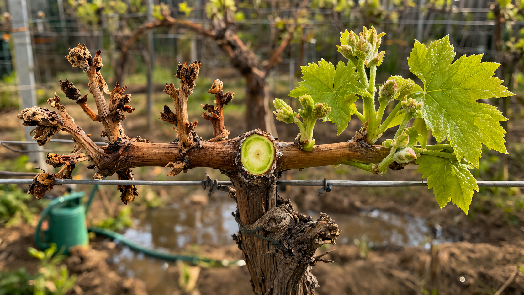 Quando ataca geadas de regresso da primaverae os primeiros a morrer rim central – a que produz os cachos maiores e mais saudáveis. Muitos viticultores entram em pânico e começam a cortar as videiras pela raiz, sem saber que a natureza incorporou um poderoso mecanismo de segurança na planta. As uvas podem recuperar se forem corretamente estimuladas gomos de substituição и buracos de canto.
