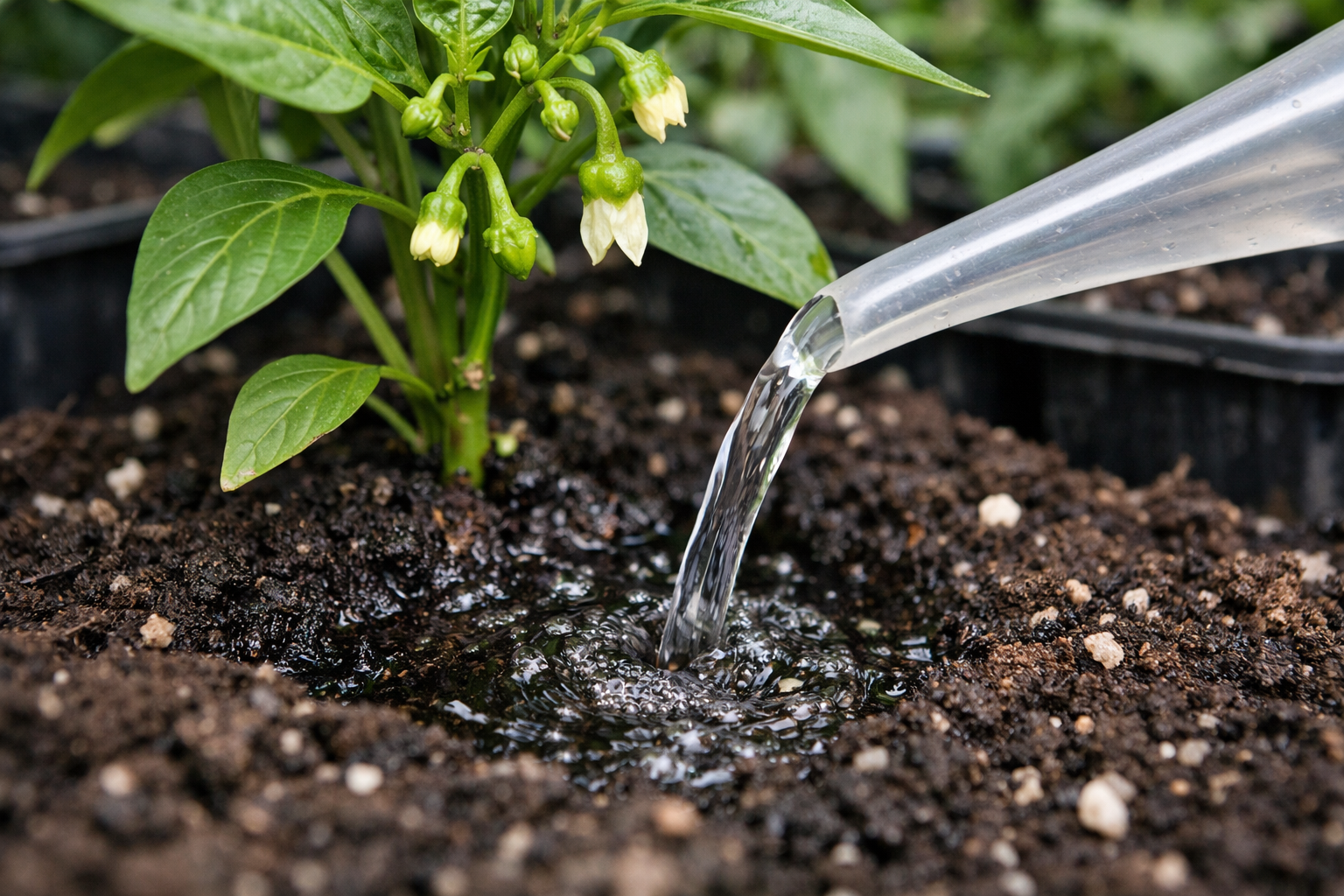 O solo deve ser humedecido à medida que a camada superior seca, não permitindo categoricamente que o solo seque completamente.