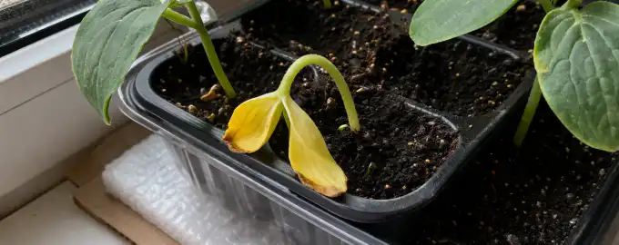 Os seus pepinos pareciam vigorosos ontem, mas hoje as folhas das plântulas ficaram amarelas e o caule está perigosamente curvado em relação ao solo?